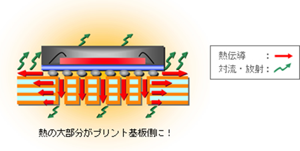 実務上はPCB内部の熱伝導でホットスポットを広げ、表面では熱対流・熱放射で環境へ放出するという組み合わせで最適化します。